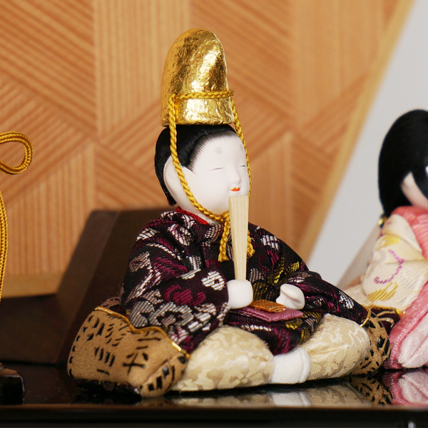 生地には、豪華で緻密に計算された紋様の美しさがきわだつ正絹京都西陣織を用いて品格の高い雛人形に仕上がっています。