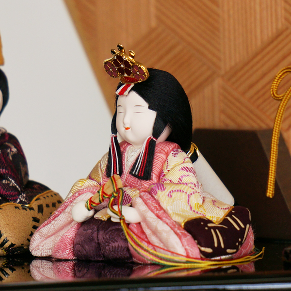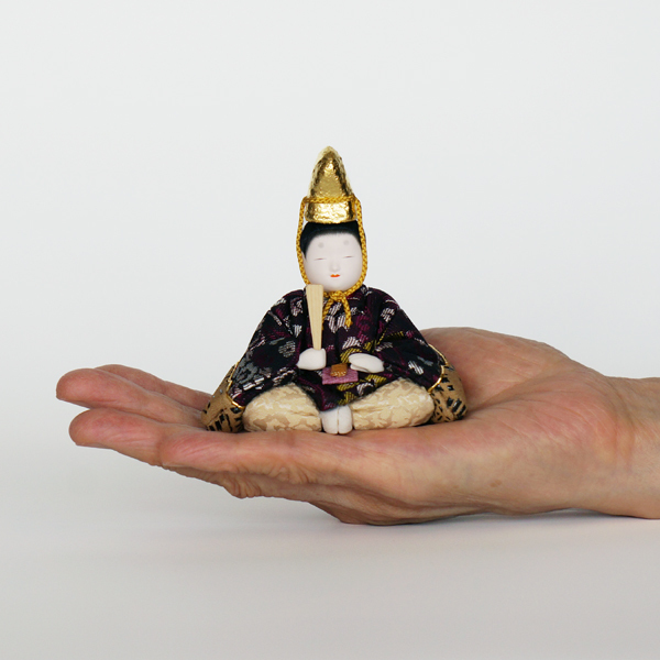 雛人形は手のひらにのるコンパクトサイズ。「江戸木目込人形」の技法を用い、柿沼東光(柿沼人形)の工房で職人がひとつひとつ丁寧に製作しています。